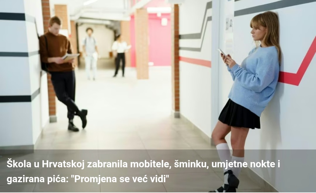 Osnovna škola Vrgorac zabranila je učenicima viših razreda korištenje mobitela i pametnih satova za vrijeme nastave. Naime, oni ih prije početka nastave moraju spremiti u ormariće, gdje ostaju do kraja nastavnog dana, čak i tokom odmora. Učenici nižih razreda mogu ih spremiti u torbe, ali isključivo ugašene. Osim toga, zabranjeni su i vještački nokti, šminka te gazirani sokovi, donosi RTL Danas.