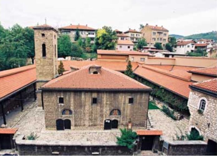 Centralni dio crkve okružen je lukovima i galerijom. Zvonik je dograđen nakon prestanka osmanlijske vladavine 1883. godine, a rekonstruisan 1960. godine, kada je dobio današnji izgled. U unutrašnjem dvorištu nalazi se muzej sa vrijednom zbirkom ikona iz vremena od XIII do XIX vijeka, brojni rukopisi, liturgijski i umjetnički eksponati.