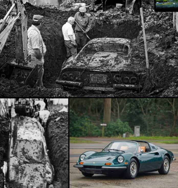 Na nekoliko metara ispod zemlje, umotan u peškire i zaštićen zelenom ceradom, ležao je “Ferrari Dino 246 GTS” iz 1974. godine. Zakopan kao blago. Sačuvan kao da je neko, jednog dana, planirao da se vrati po njega.