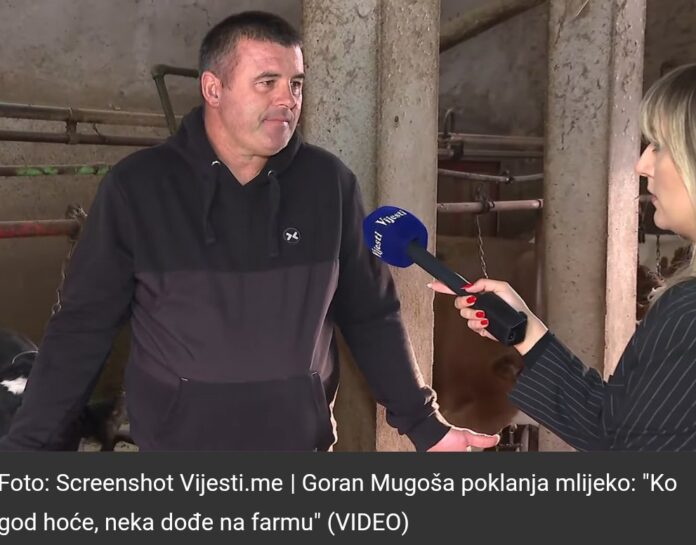 “Ko god hoće, neka dođe na farmu, pet litara, deset litara, punoga srca, neka dođe sa bidonom, ja ću mu napuniti, neka nosi, ali ga prosipati neću. Jer mislim da je to grehota. Ja se mučim, radim ovdje, praktično sam 24 sata na farmi – ja sam i veterinar, i radnik, i muzač”, kazao je Mugoša za “Boje jutra” na Televiziji Vijesti.